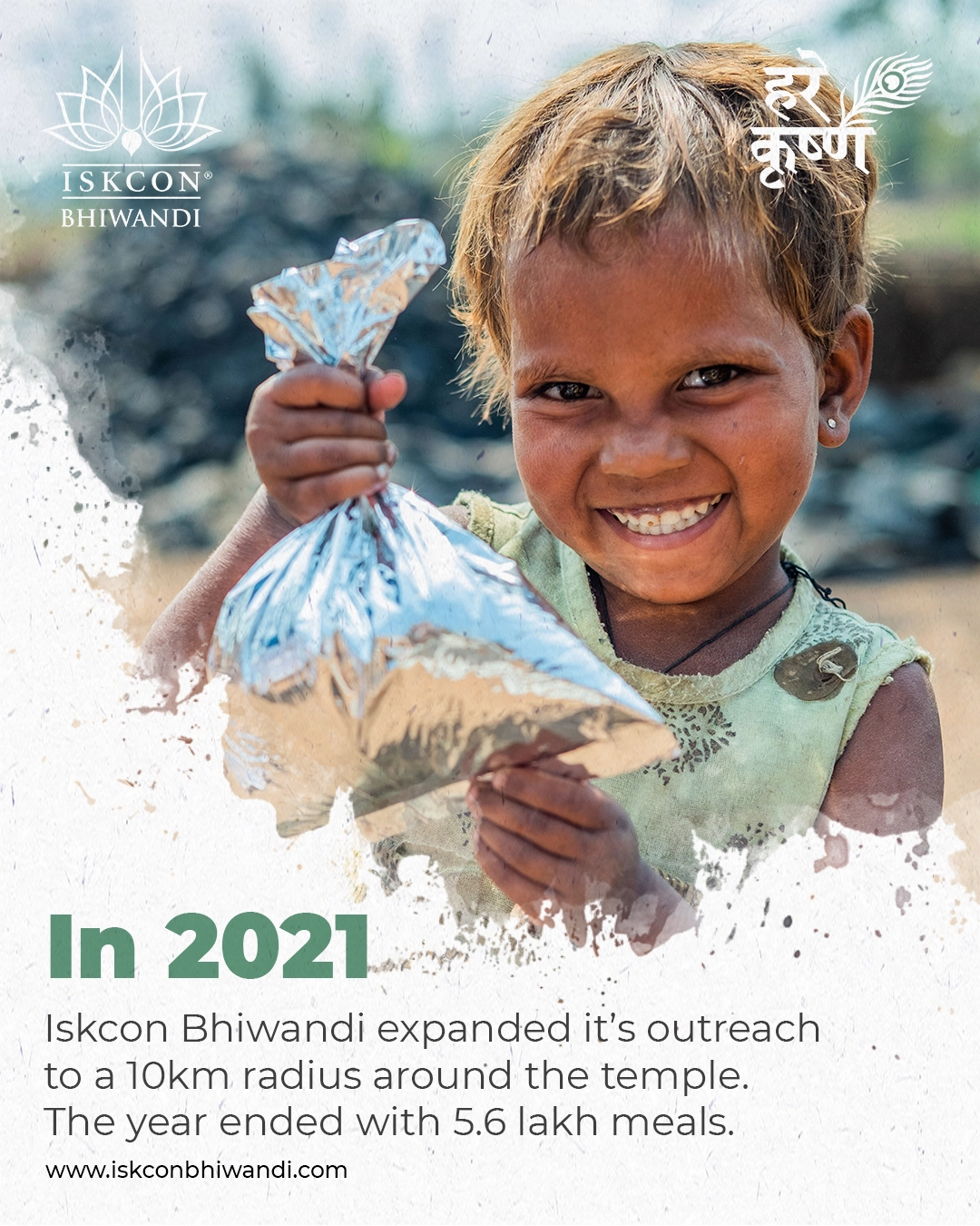 Sri Sri Radha Madhava Temple ISKCON Bhiwandi started the Food for Life Annadaan movement in 2020 when migrant workers around the temple needed one nutritious meal and we shared with them the Lord’s prasad.